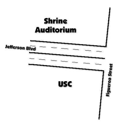 After not really having too much difficultly with traffic (I parked in a lot on the opposite side of campus), I ventured up to Jefferson Blvd. to see all the hub bub first hand Monday night... but by the time I got there, all I saw were Oscar® statues, cops, and limos. I walked a little closer, thought for a second about how all those movie stars were located right there, then went to class.
